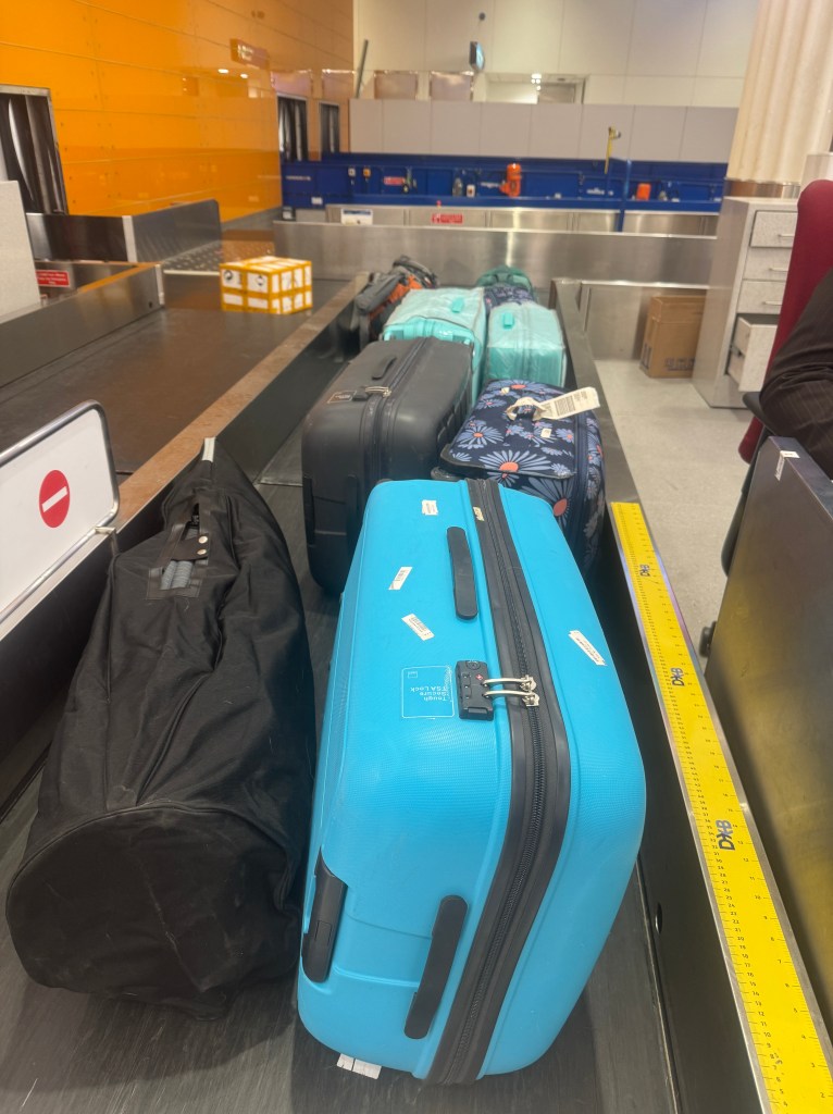 As with all air travel, there is always a certain amount of anxiety getting to the airport and passing through security. Will our bags be the right weight, or will we be charged extra? Bear in mind we had nine suitcases, so this was especially worrying.